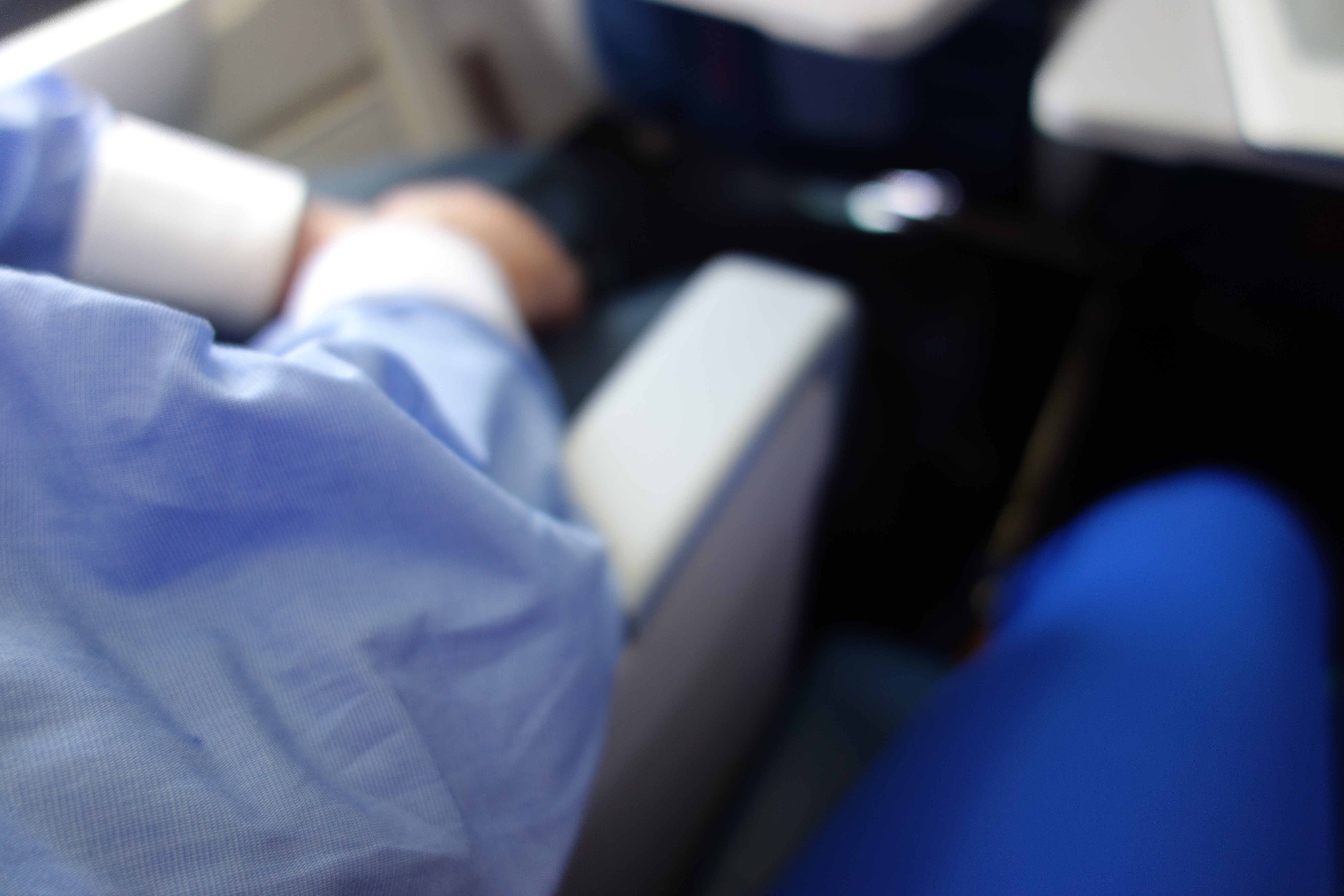 Realizing I needed to be more aggressive, I violently shoved my elbow against his. And then like Sherman taking Richmond I gained ground. But not much. My elbow is now uncomfortably wedged between the back of the seat and his arm. I smile and say, “um perhaps we can share this.” He says, “I’m good with that.” Of course you are. You’ve got one and half the times the limb lounging area that I do.